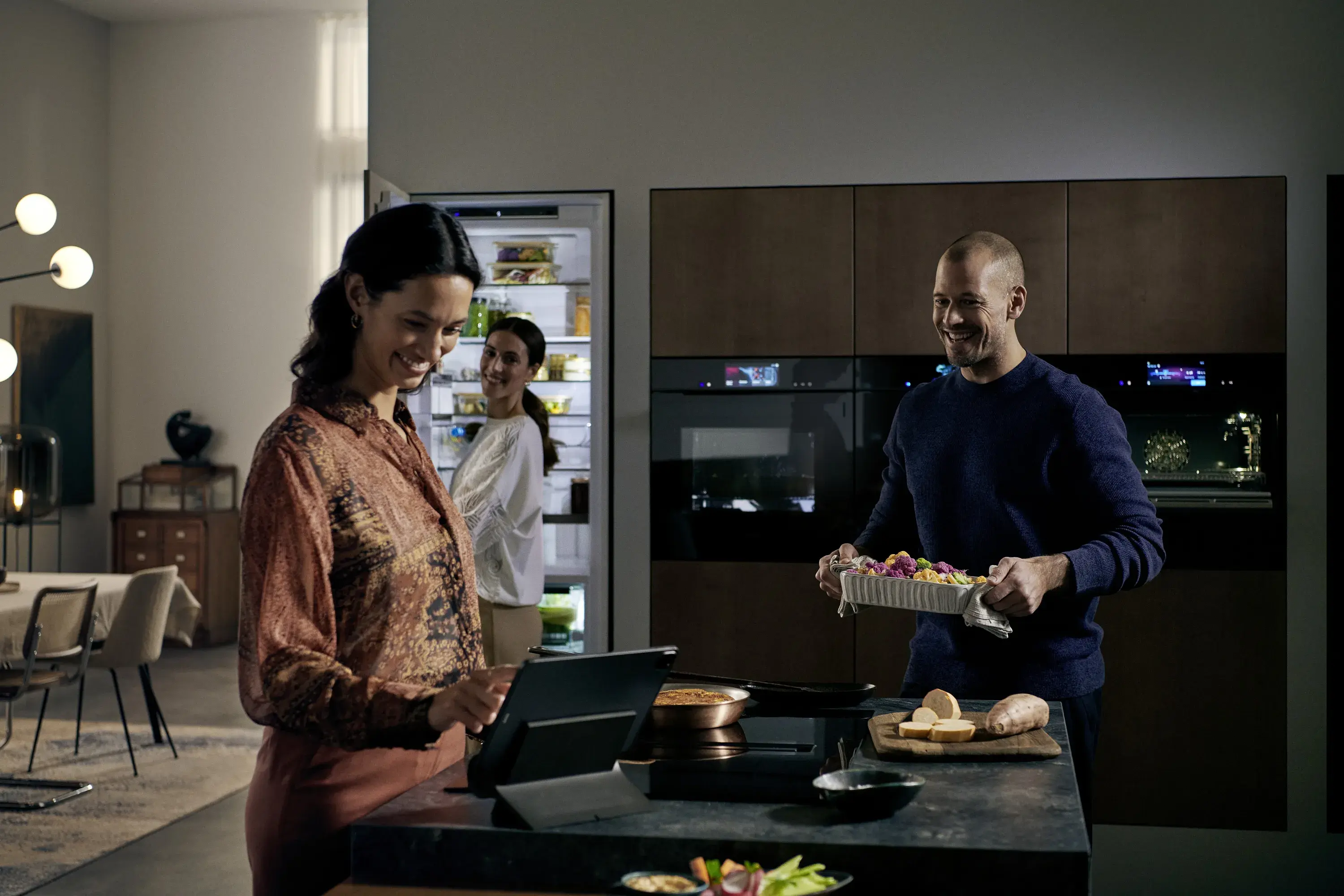 studioLine zeichnet sich durch besondere Ausstattungsmerkmale aus, die es so nur in dieser exklusiven Einbaugeräte-Reihe gibt. Die Farbgebung blackSteel, glänzendes Schwarz, schafft in der Küche eine elegante Atmosphäre. So können alle Geräte der Serie miteinander kombiniert werden und bilden immer einen einheitlichen Look.